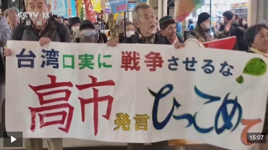 這些天來,日本各地民眾連續多天自發舉行集會,激烈抗議日本首相高市早苗的涉臺錯誤言論。11月7日,高市早苗在國會公然宣稱,“臺灣有事”可能構成日本可行使集體自衛權的“存亡危機事態”,暗示可能武力介入臺海問題。這樣的謬論引發中日兩國及國際社會廣泛關注和強烈批評。在中方多次嚴正交涉後,高市仍不知悔改,並在國會答辯時堅稱,有關言論符合日本政府看法,無意撤回或取消。