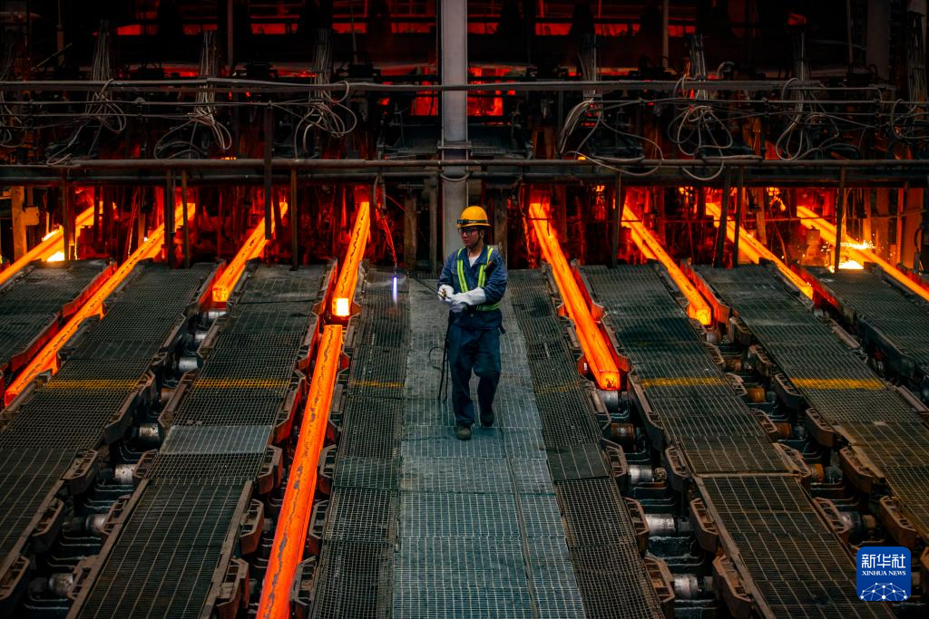 工人在方大集團九江萍鋼鋼鐵有限公司的生產車間作業(2025年4月3日攝)。新華社發(李學華攝)