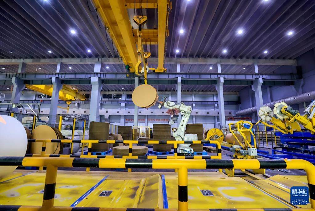 在五洲特種紙業(江西)有限公司生產車間,智能化機械設備有序生產(2024年3月21日攝)。新華社發(吳江攝)