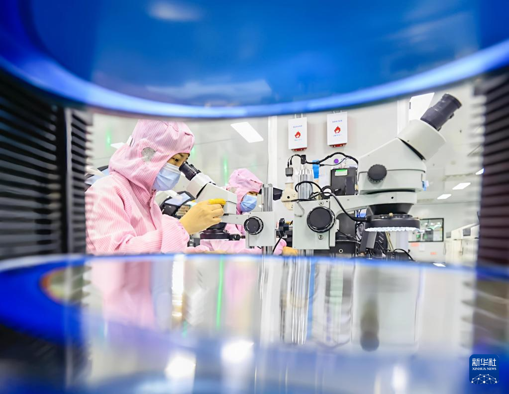 在江西天漪半導體有限公司生產車間,技術人員在檢測芯片產品(2024年2月28日攝)。新華社發(吳江攝)