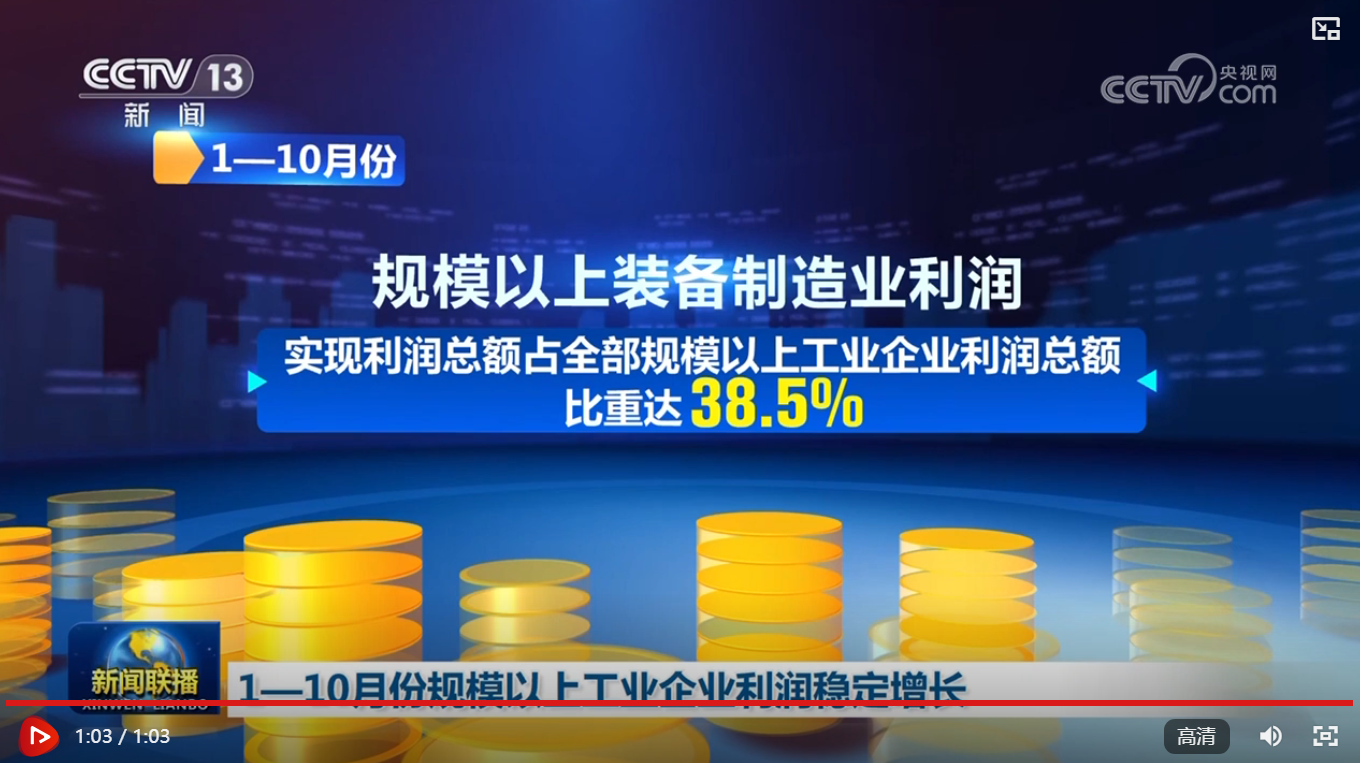 央視網消息(新聞聯播):國家統計局11月27日發布數據顯示,1—10月份,規模以上工業企業利潤同比增長1.9%,自今年8月份以來累計增速連續三個月保持增長。