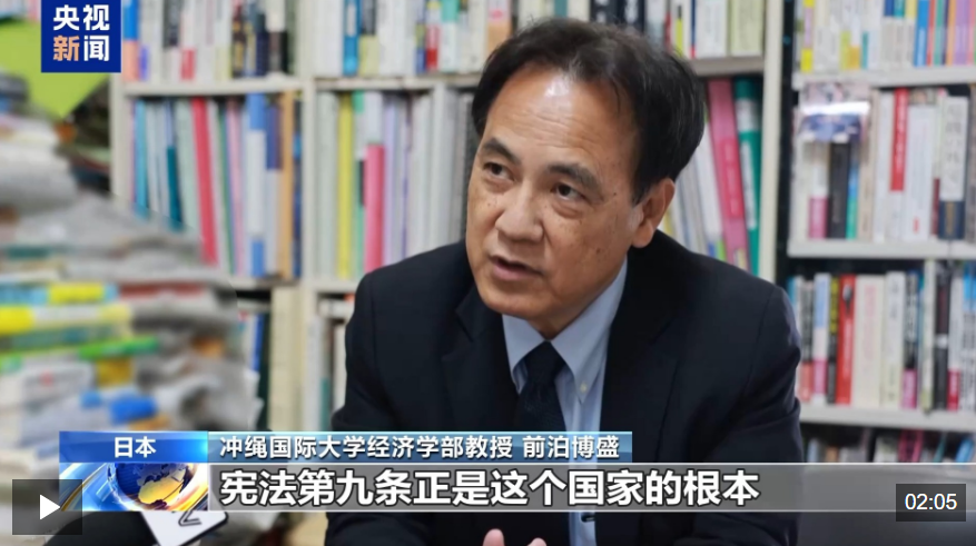 衝繩國際大學經濟學部教授 前泊博盛:這本就不是一個首相應該發表的言論內容,這一點在日本國內也已經遭到了批評。日本本應是“非戰國家”,是一個在憲法中明確寫下“不戰”的國家,憲法第九條正是這個國家的根本,其中清楚寫著“日本不擁有軍隊”,包括陸海空三軍,同時規定,不使用武力作為解決國際爭端的手段。正因為如此,日本才能成為中國可以信任的國家,如果現在要向壞的方向修改這一條,那麼就可以理解為,日本正朝著危險的方向前進。