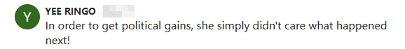 網友@YEE RINGO說道:“為了獲得政治利益,她(高市早苗)根本不在乎接下來會發生什麼!”