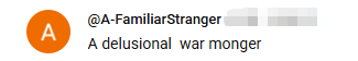 網友@A-FamiliarStranger表示,高市早苗是“一個癡心妄想的戰爭販子。”