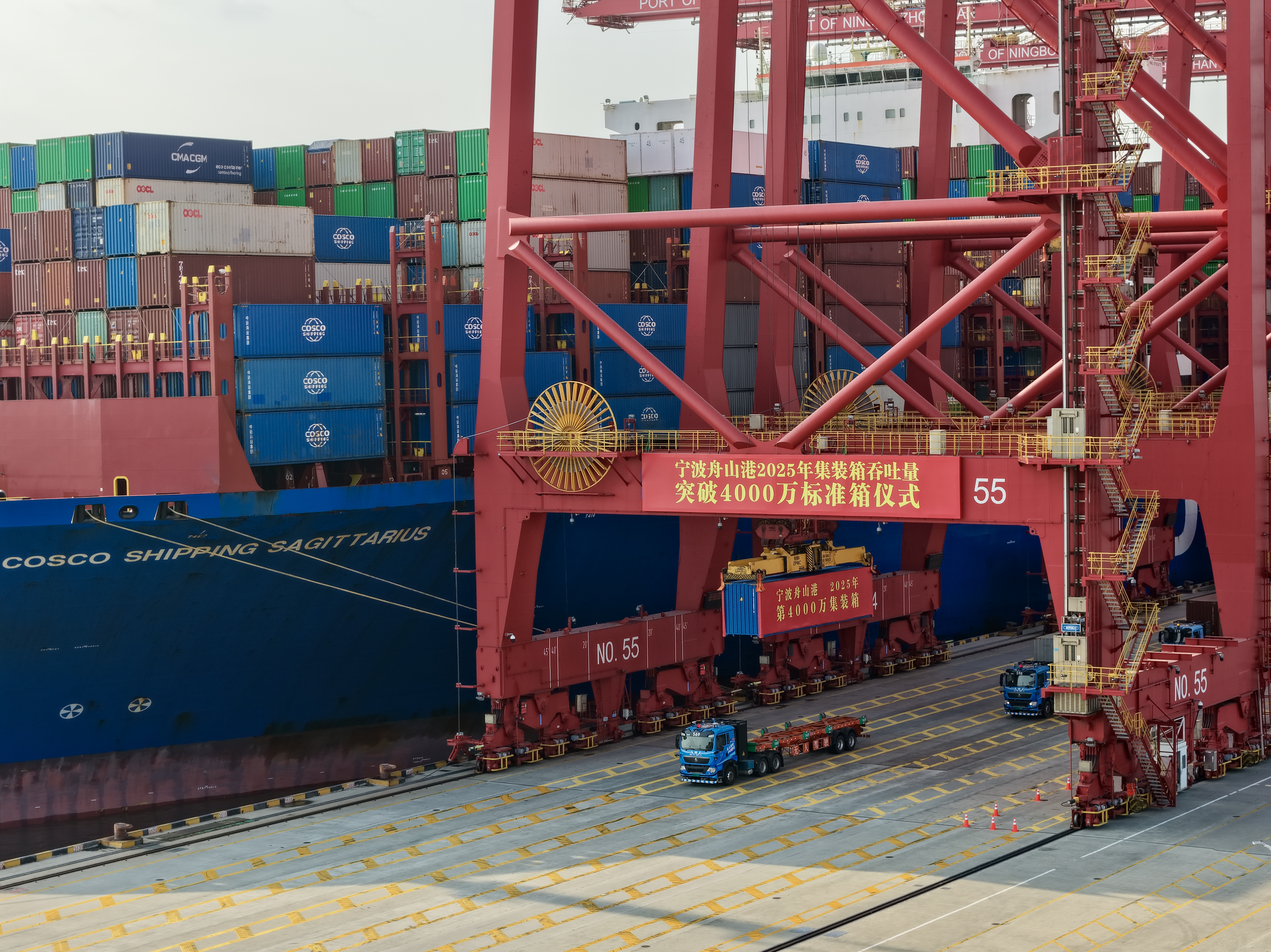 從量的積累到質的飛躍,寧波舟山港的增速寫下了全球港口發展的“中國速度”:從1000萬標箱到2000萬標箱,用了7年;從2000萬到3000萬,耗時6年;而從3000萬衝刺4000萬,僅用短短4年。寧波舟山港由此成為全球前五大港口中近十年來增速最快、增量最大的港口。這一里程碑背後,是浙江推進世界一流強港建設的堅實步伐,更是中國外貿韌性的生動體現。