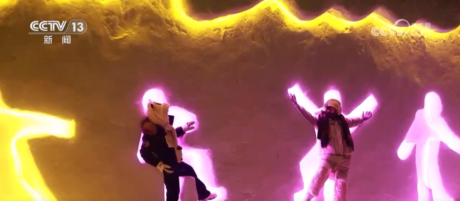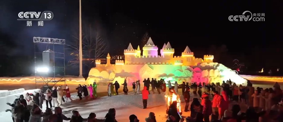 夜幕下的漠河市北極村被燈光點亮,惟妙惟肖的雪雕有了不一樣的顏色。在小廣場上,天南地北的遊客聚在一起攜手起舞,並用鏡頭記錄下浪漫的煙火。為滿足滑雪愛好者的需求,當地雪場今年首次開放夜滑,並新增了雪道。