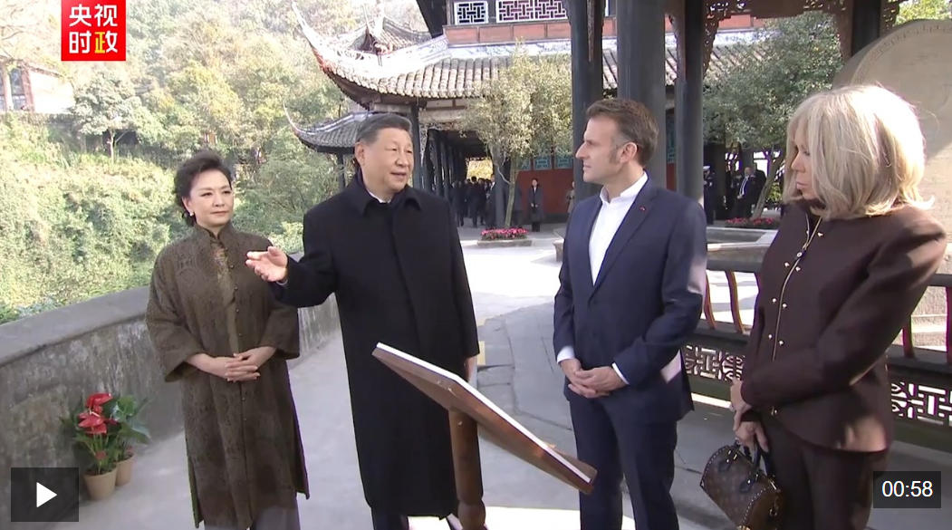 12月5日,國家主席習近平在四川省成都市都江堰同法國總統馬克龍進行友好交流。