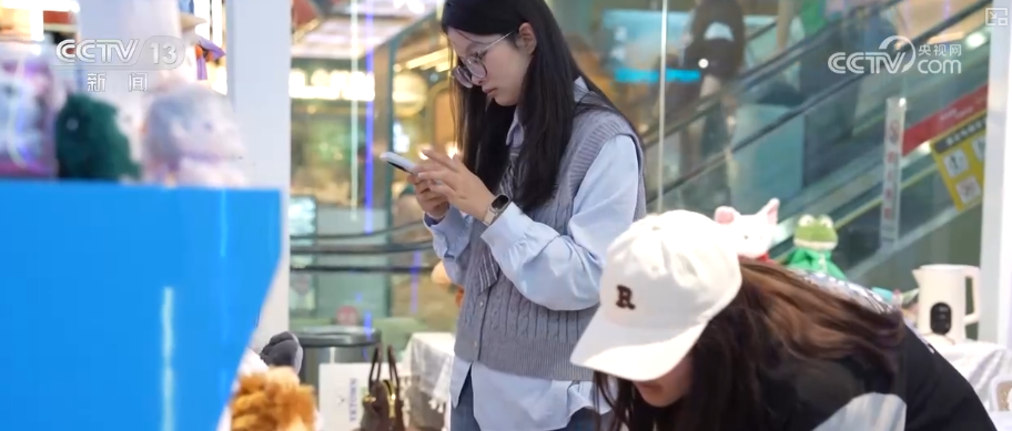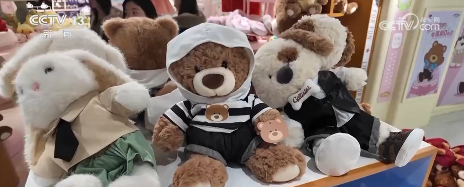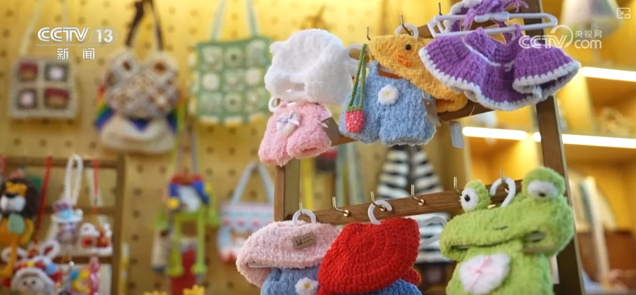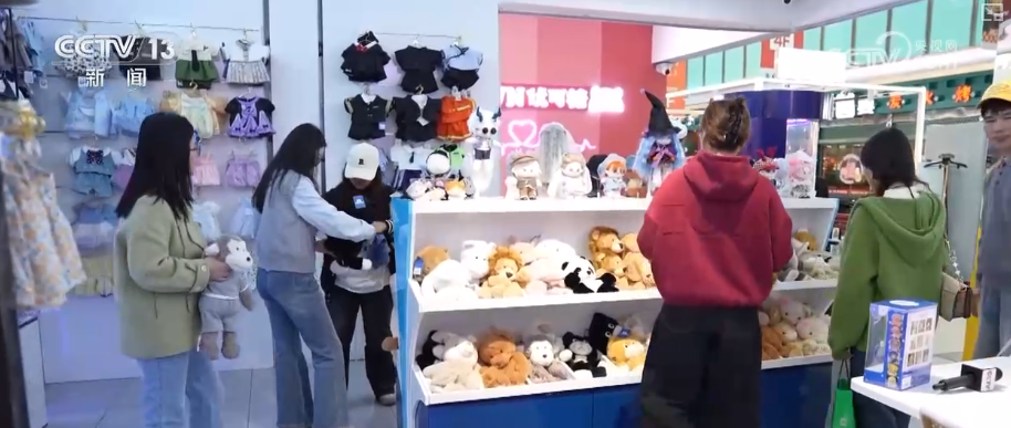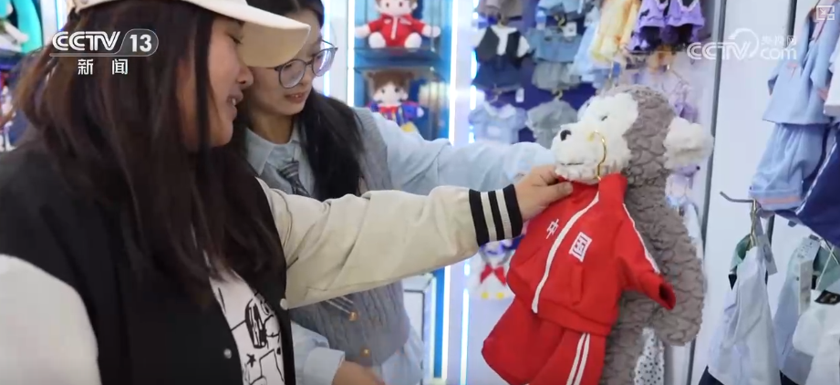 娃衣店店主張韻詩介紹,很多顧客的建議,加入了“娃衣”的售賣。很多消費者會現場給玩偶試穿,還會和他們交流設計想法,2025年以來,“娃衣”銷售量增長了30%左右。