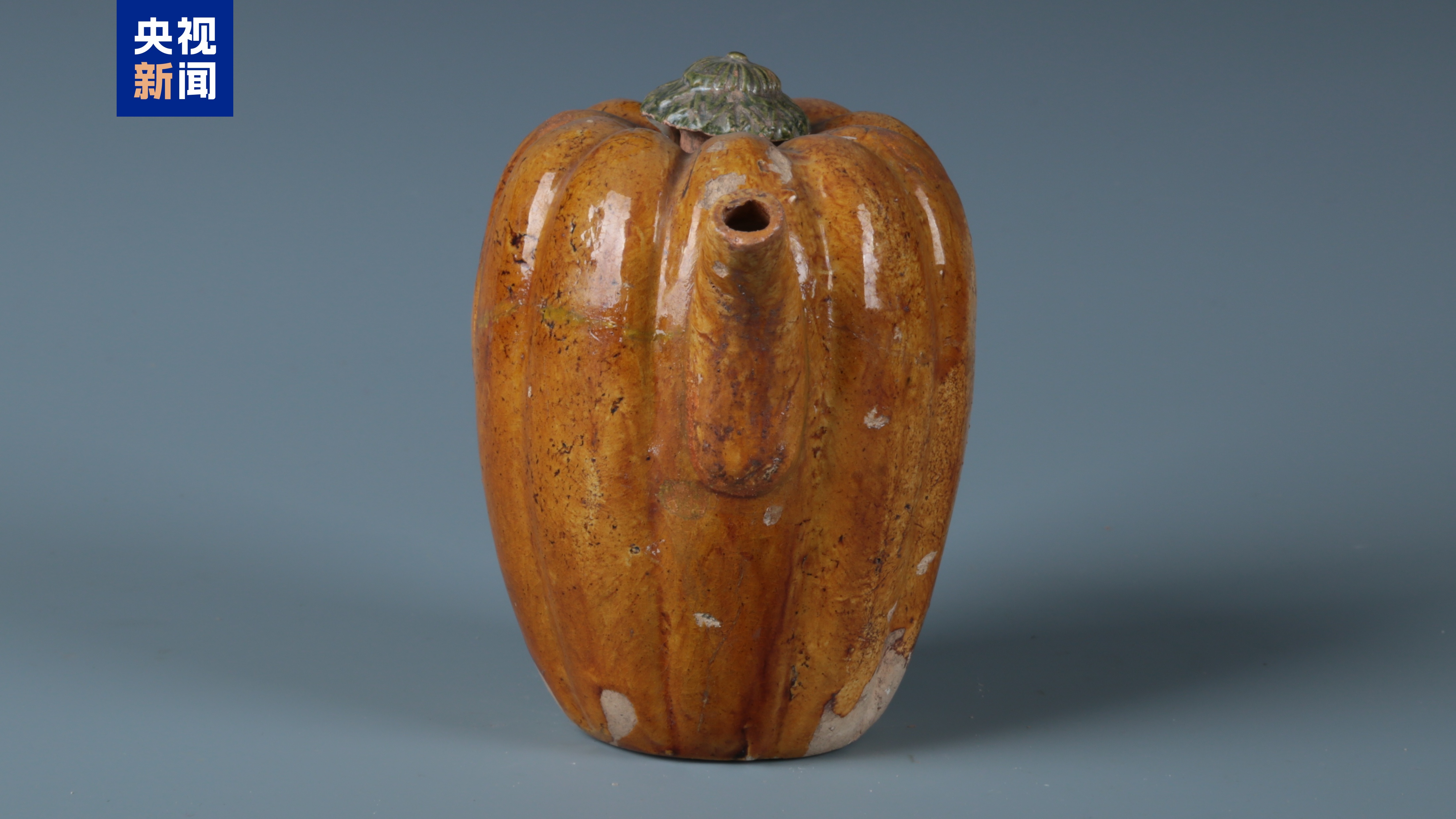 瓜形三彩執壺是一件惟妙惟肖的倣生器