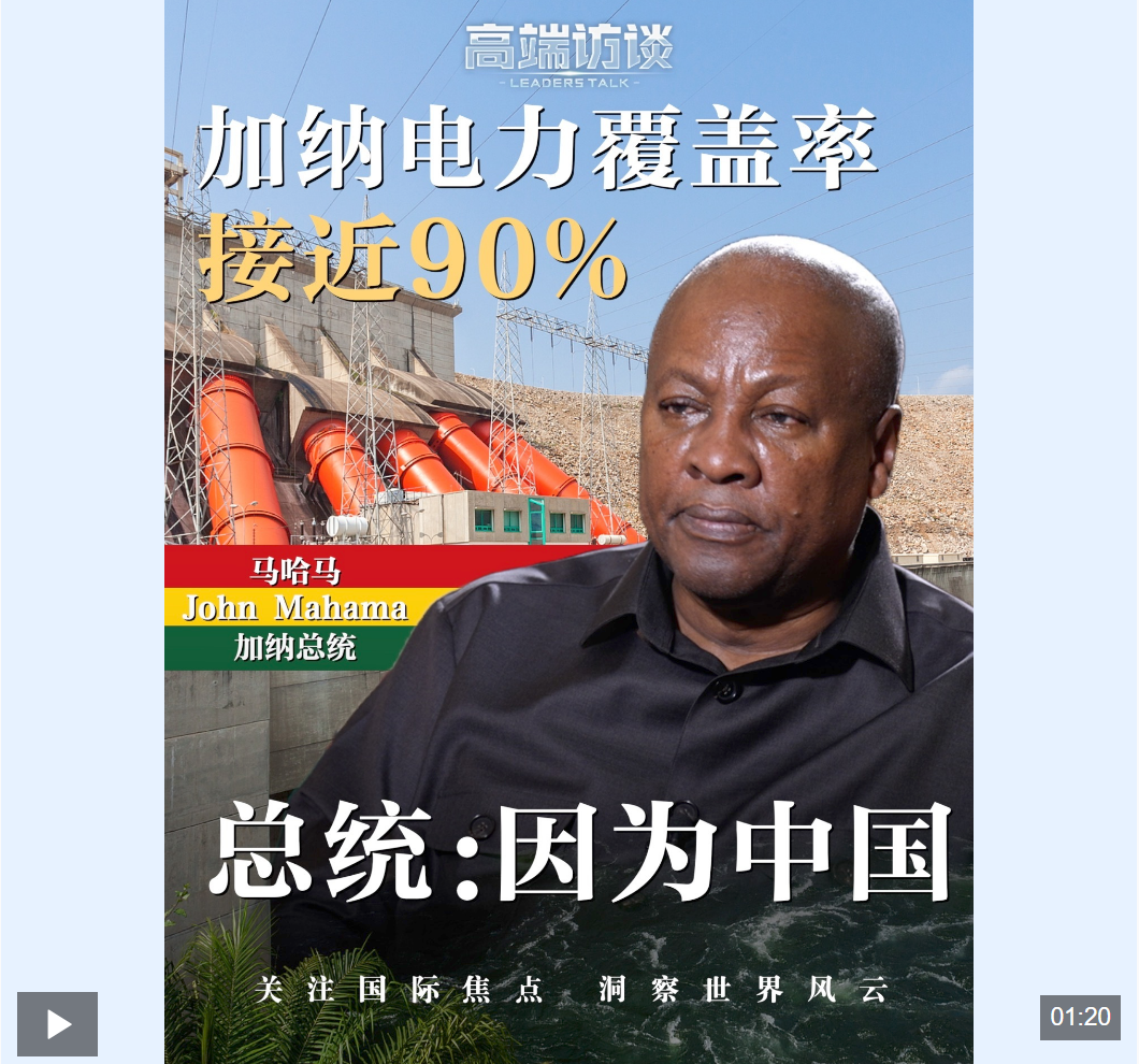 馬哈馬表示,中國在非洲基礎設施發展進程中發揮了關鍵作用。在其他地區,中國企業修建了連通加納城市的鐵路,並且為加納的農村電氣化項目提供了資金支持。正因為中國的支持,如今加納電力覆蓋率接近90%,躋身非洲電力覆蓋率最高國家之列。