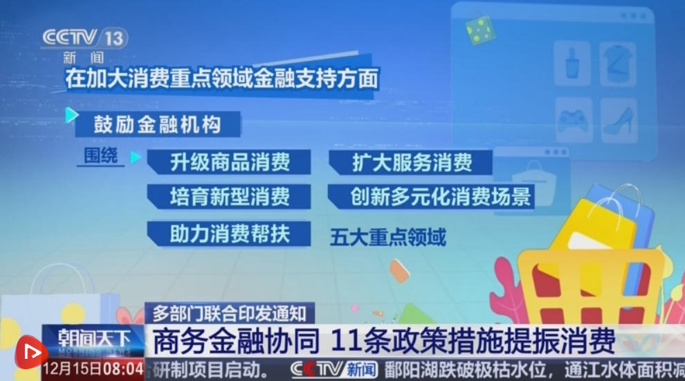 圍繞商品消費、服務消費、新型消費等重點領域,商務部、中國人民銀行等部門在新政策措施中明確提出,加大金融支持力度,進一步惠民生、促消費。