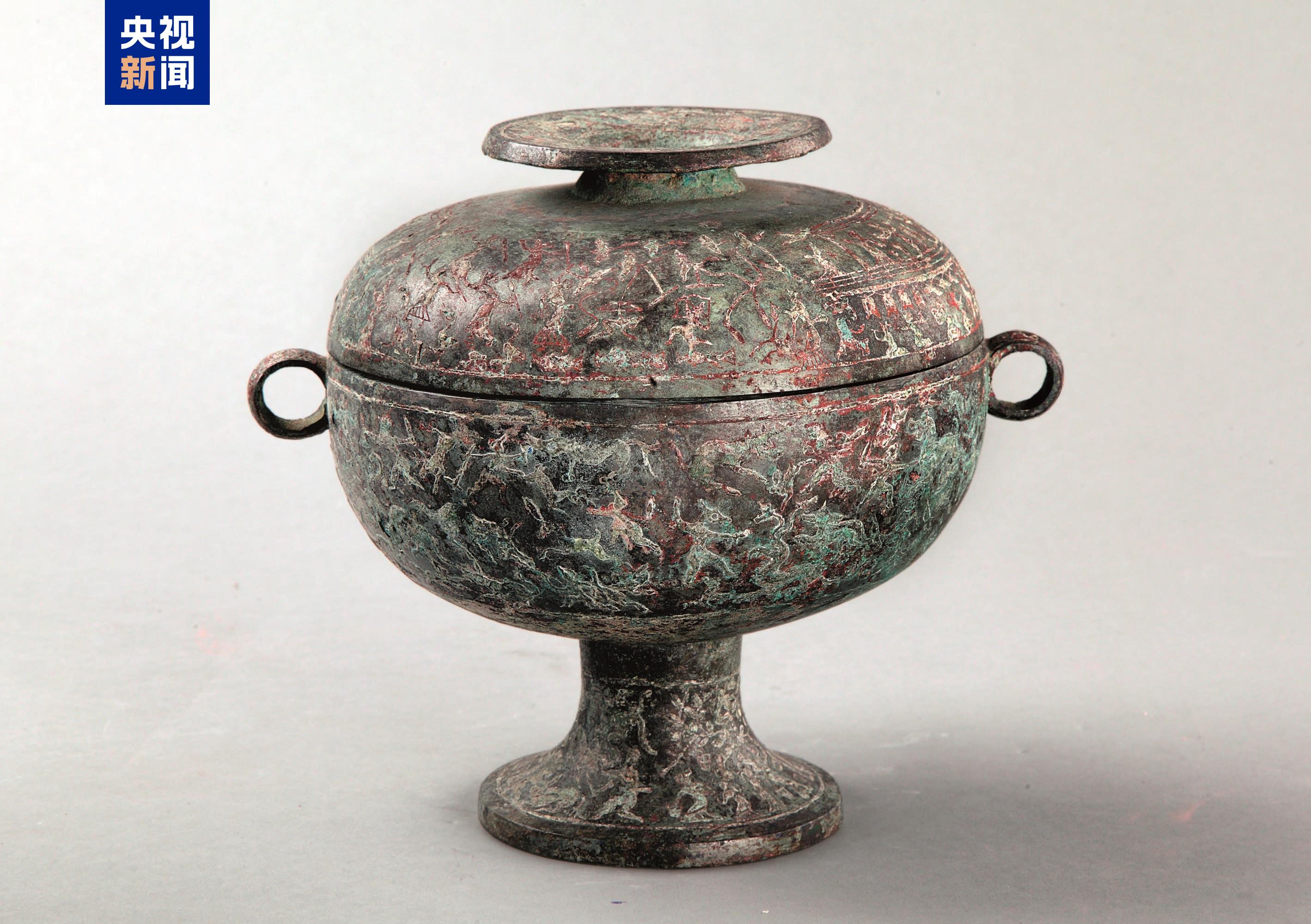 △戰國 狩獵宴樂圖銅蓋豆 河北省文物考古研究院藏