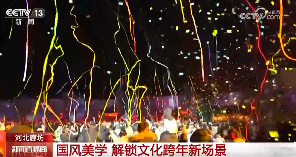 2025年12月31日晚,在河北廊坊一景區,一場融合了沉浸式戲劇、新歲祈福與青春狂歡的跨年盛宴,吸引了上萬名遊客。隨著新年零點鐘聲的響起,印有祝福語的彩帶傾瀉而下,遊客倣佛置身“彩帶海洋”。數百盞係著遊客心願卡的孔明燈緩緩升起,點亮新年的夜空。