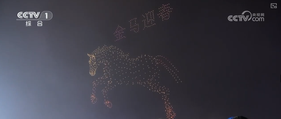 在青海西寧,千架無人機時而匯聚成奔騰的駿馬踏雲而行,時而幻化為展翅鳳凰,在夜空中翩然起舞。以深邃天幕為畫卷,以絢麗燈光為筆墨,璀璨星河點亮2026年的序幕。