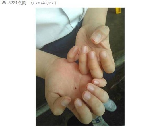 根據馬來西亞《中國報》報道,一名就讀沙令華小的男童因為忘記剪指甲遭處罰,沒想到竟是老師“親自操刀”幫忙,還將十指指甲剪到“入肉”,流血,導致他十根指頭都沾上些許幹掉的血漬。