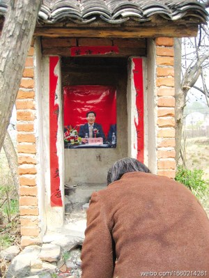 網友發出的老人供奉縣長圖片 (圖片來源:山東商報)