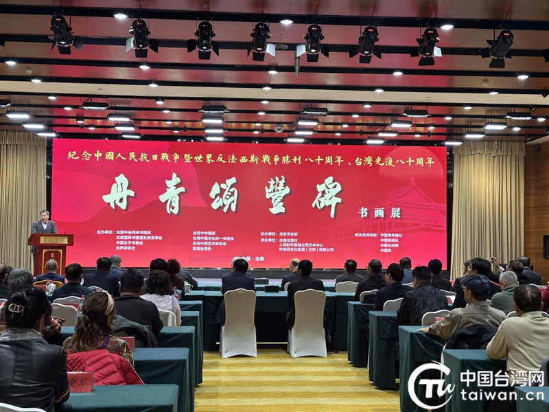 中國臺灣網北京10月19日訊(記者 宋歌)10月19日下午,由臺盟中央兩岸書畫院聯合北京國畫藝術家協會、中國女子書畫院、臺聲雜志社、臺灣中華畫院、臺灣中國文化統一促進會、臺灣中國藝術家協會、港澳臺美協,共同組織策劃的“丹青頌豐碑——海峽兩岸書畫名家紀念中國人民抗日戰爭暨世界反法西斯戰爭勝利80周年、臺灣光復80周年主題創作展”活動在北京臺灣會館隆重舉行。