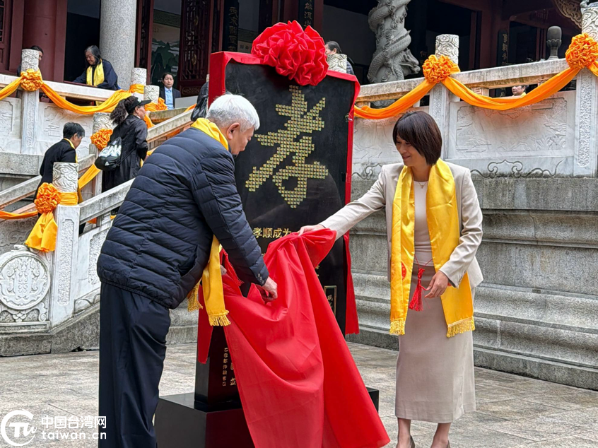 旺旺集團董事長蔡衍明(左)、寧遠縣副縣長曾彩平(右)共同“孝親碑”揭幕(中國臺灣網記者 葉春祿 攝)