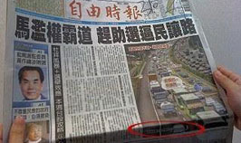 《自由時報》刊登馬英九車隊行駛高速公路“濫權霸道”的合成照片,馬英九辦公室與陳水扁辦公室分別否認是兩人的車隊。馬英九幕僚要求說明照片如何拼湊。《全文》