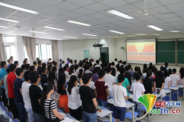 中國石油大學(華東)理學院組織全體黨員觀看慶祝中國共產黨成立95周年大會 中國青年網通訊員 鐘宏 攝