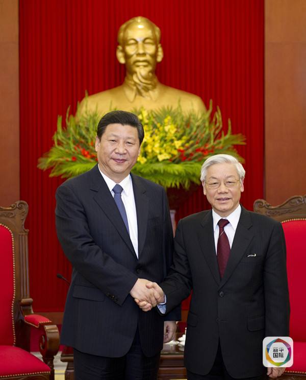 2011年12月21日,時任中共中央政治局常委、國家副主席習近平在河內會見越共中央總書記阮富仲。