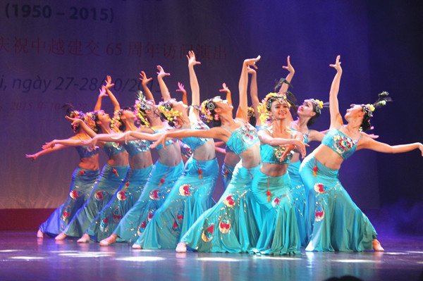 2015年10月27日,中國雲南省藝術團在越南首都河內表演傣族舞蹈《美的祝福》,慶祝中越建交65周年。