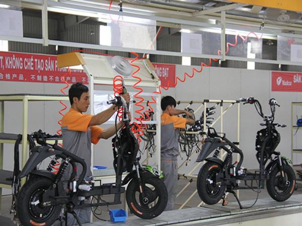 一年前,雅迪科技有限公司(越南)入駐位于越南首都河內的一個工業區。如今,工廠佔地已達8000多平方米,月產能達1.2萬輛電動車。
