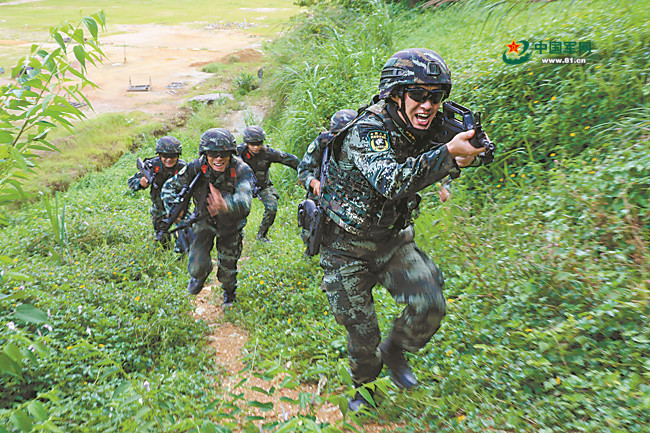 陳玉浩告訴記者:“是集訓隊這個平臺在推著我飛奔。”其實,被推著“飛奔”的何止是他一人,幾乎所有預備特戰隊員都被激發出最大潛能。為提高射擊精度和速度,他們堅持據槍定型訓練,苦練快速射擊技能,雙手虎口、手指都磨出血泡、起了老繭。數月後,他們練成了出槍即擊發、擊發即命中的過人本領。