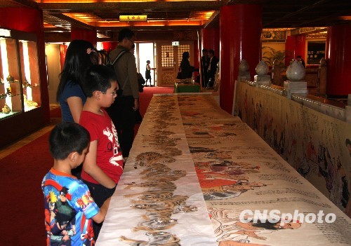 12月15日,河南省民俗藝術展暨河南農民畫展在臺北圓山大飯店開展。圖為臺灣民眾觀賞河南“畫虎第一村”畫家作品。中新社發 陳立宇 攝