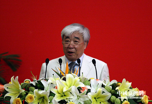 中國影協顧問、劇作家、作家、詩人蘇叔陽匯報第五屆兩岸經貿文化論壇上“中華文化的傳承與創新”議題的研討情況。(中國臺灣網 鐘寶華 攝)