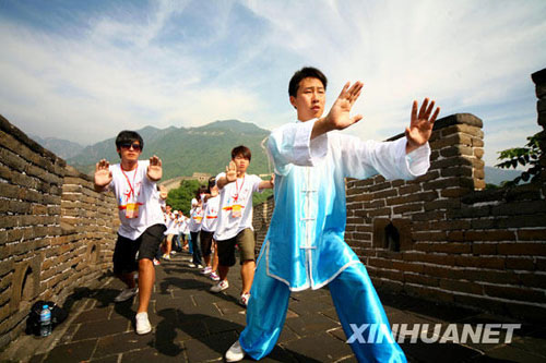 當日,“兩岸青年舞太極聚長城”活動在北京懷柔慕田峪長城舉行,來自臺灣大學、基隆市二信中學等院校的學生與北京600余名師生歡聚長城,習練太極,共敘友情。