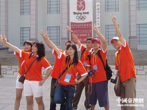夏令營北京行程的最後一天,營員們一大早就來到了北京天安門廣場。天安門城樓、人民大會堂、人民英雄紀念碑、國家博物館前的奧運倒計時牌,都成為了營員們留影的熱點。(趙春旭)