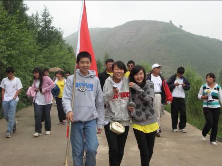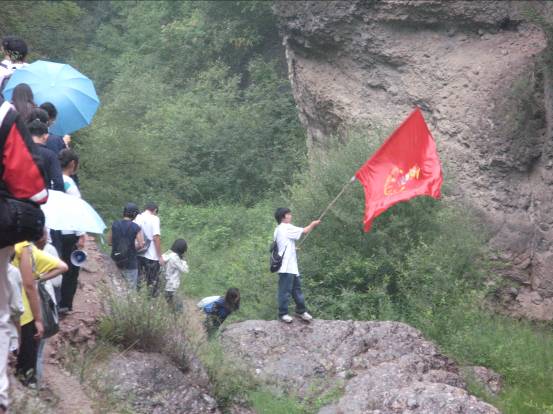 午餐後,由于天氣原因,考慮到安全因素,夏令營領導決定放棄原來參觀涇源國家森林公園的計劃,轉為前往胭脂峽景區。胭脂峽景區位于涇源縣東8公里處,是一條在南北兩道峰巒挾持下的長45公里,寬100-200米的漏鬥狀大峽谷。