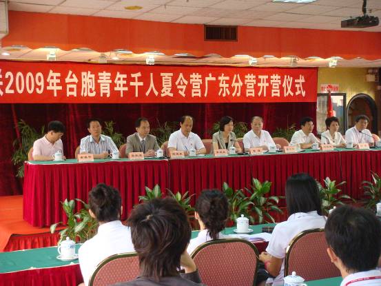以“龍脈相傳、青春中華”為主題的全國臺聯2009年臺胞青年千人夏令營廣東分營于7月9日在我市開營。全國臺聯副會長、廣東省臺聯會長陳俊康,市委常委、常務副市長張瑛,市政府副秘書長葉榮輝,市臺務局局長廖巍,市臺務局副局長陳僑生,市教育局副局長古昌平等出席開營儀式。
