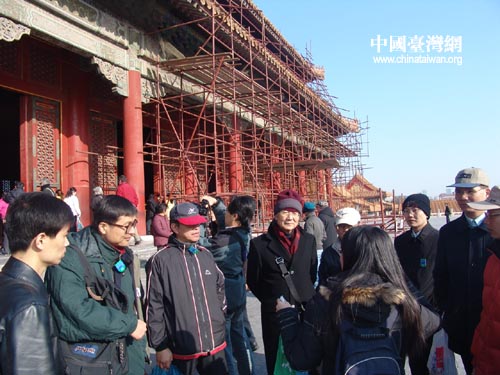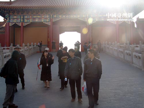 11月27日-30日,第三屆海峽兩岸沿海地區資源、環境與可持續發展學術研討會在天津大學舉行。30日上午,各位來自臺灣地區專家學者參觀了故宮博物院。此次行程給他們留下了深刻的印象,被故宮博物院的宏偉氣勢折服,並希望能夠有機會再次到大陸來參觀。圖為臺灣專家學者參觀故宮博物院。