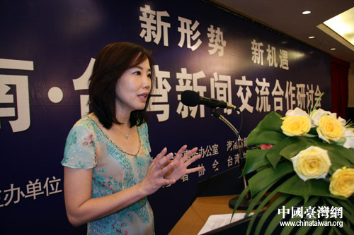 臺灣知名評論員尹乃菁在研討會上進行主題演講(中國臺灣網 李徽 攝)