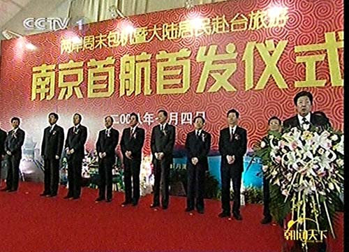 南京兩岸周末包機首航剪彩。(圖片來源:央視電視截圖)