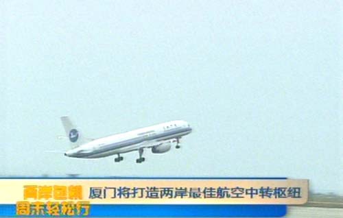 兩岸周末包機廈門航點飛機起飛。(圖片來源:央視電視截圖)