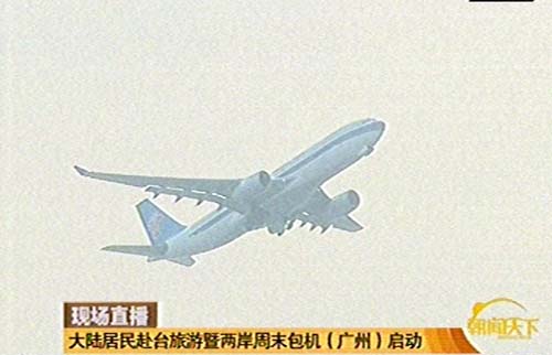 兩岸周末包機廈門航點飛機起飛。(圖片來源:央視電視截圖)