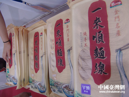 售價30元一包的金門名產“一來順面線”很快被搶購一空。在展出1小時之內就賣出了100包。銷售人員介紹說,很多來買的人都是上海臺商。因臺商為在路經“小三通”的時候都會帶一些,這次就直接來買了。(魏萌)