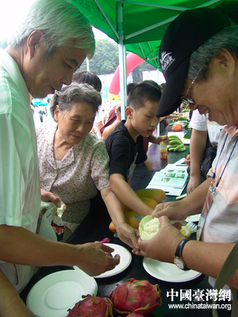 |   中國臺灣網7月24日南京消息 昨日,2007臺灣優質農產品南京巡展在南京市白馬公園舉行了簡短的開幕式,南京市人民政府副秘書長瞿為民和臺灣省農會秘書歐建良分別致開幕辭。開幕式後,舉行了臺灣優質農產品的展示品嘗活動,南京市民反應熱烈。   展示品嘗活動吸引了眾多人參與,主持人宣布活動正式開始後,一大群人很快就各自“奔赴”到選中的臺灣農產品品嘗臺前。一位來自新疆的遊客在品嘗了臺灣芒果後告訴記者,原來只在電視上看到過臺灣水果,這次到南京來旅遊,沒想到竟然有機會品嘗到。他說,芒果很甜,蓮霧水分很足,臺灣的水果味道果然不一樣。   經過短短半個多小時,用來給市民品嘗的臺灣水果及農產品深加工品就被“消滅”殆盡。品嘗過的市民都流連不已,問在哪里可以購買。當得知本次活動只有品嘗而沒有銷售的時候,都表示遺憾。   有趣的是,在品嘗會甫一結束,剛還晴空萬里的天空幾分鐘內就忽然下起了雨。前來參展的臺農業者妙解說,這是幸運之雨,連老天都被味美的臺灣水果吸引來了。聽者無不莞爾。(魏萌)