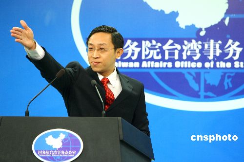 四月十一日,國務院臺灣事務辦公室新聞發言人楊毅在北京舉行的新聞發布會上宣布:經與中國國民黨方面磋商,第三屆“兩岸經貿文化論壇”將于四月二十八日至二十九日在北京舉行。 中新社發 廖文靜 攝