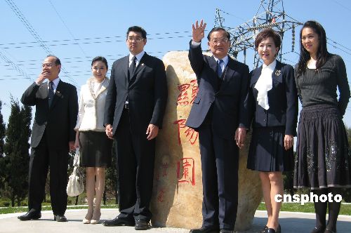 今日上午,中國國民黨榮譽主席連戰攜夫人、兒子、兒媳及女兒來到其母親趙蘭坤女士的父母及趙氏祖塋地,為紀念趙氏先人而興建的公園——顯陽園揭幕並祭拜先人。