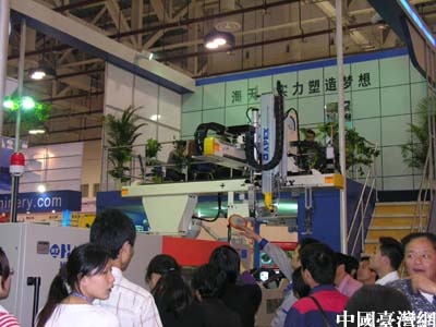 海天集團總經理唐先生向記者介紹,正在生產觀摩品的兩臺機器是高速機和雙色機,這兩臺機器可以根據不同的模板生產出不同的產品,用途大,涉及面廣,可以用它來制造不同模板的許多產品。象微波爐的器皿、手機外殼等。唐先生接著告訴記者,剛剛就有一個臺商訂購了這兩臺機器。此次來“臺交會”參展的收獲很大,不僅提高了集團的品牌知名度,也有了一定的定單。