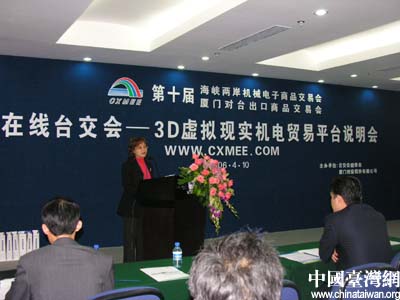 本屆臺交會適逢十周年,為迎接臺交會的十周年大慶,組委會與擁有全球領先的Web3D虛擬現實技術的廈門創壹軟件公司攜手合作, 共同打造了全球首家提供在線3D虛擬展示服務的電子商務平臺。“在線臺交會——3D虛擬現實機電貿易平臺”是“臺交會”一次新的飛躍。該平臺除提供採購信息、供求信息、產品庫、企業庫等常規服務外,還引入全球領先的3D虛擬現實建模技術,生動展示產品的外觀、性能、工作過程、操作方法...... ,解決了參展商產品多、體積大、難以全部運到現場院展示;運輸和參展成本居高不下;展位面積和展會時間有限等實際問題。(謝曉萍)