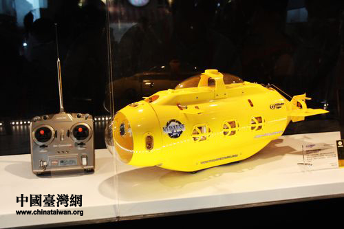 全球首款遙控潛艇,並載有攝像頭。(中國臺灣網 馬迪 攝)