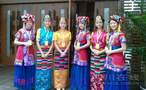 這些身著民族服飾的姑娘們來自阿壩師專,負責大會服務接待工作