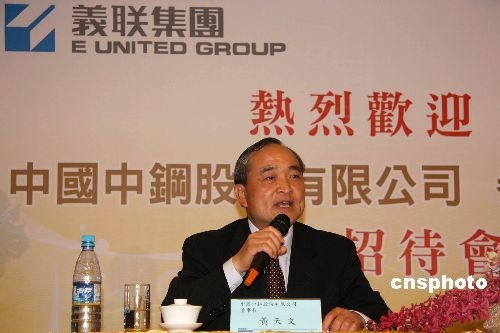 五月十一日下午,正在臺灣參訪的中國中鋼股份有限公司董事長黃天文,在高雄縣義聯集團總部召開記者會,宣布將以在香港的全資子公司的名義在臺北開設辦事處。辦事處地點已選定在臺北一0一大樓,目前正在裝修。 中新社發 耿軍 攝