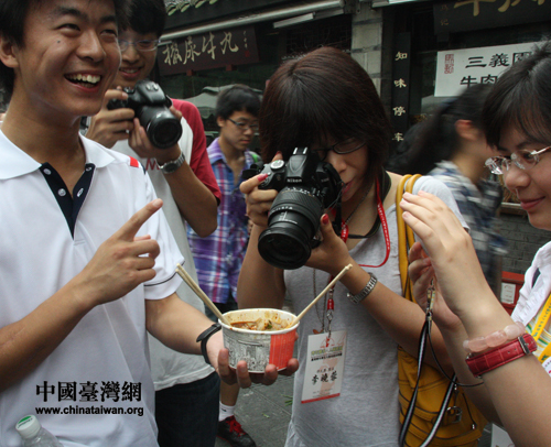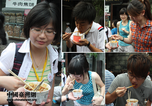 中國臺灣網7月2日成都消息 2日上午,20名參加“追尋歷史足跡”係列活動——首義之旅的兩岸同學參觀了武侯祠、錦里古街,多數人表示最愛成都小吃。