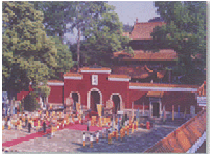 位于山西省運城市西北的舜帝陵廟,始建于公元738年,距今已有1200多年的歷史。分外城、陵園、皇城三部分。現存的正殿、獻殿、鐘鼓樓、戲臺、關公祠等古建築布局合理、主次分明;陵冢古樹參天、莊嚴肅穆;長詈神道上“千年夫妻柏”、“活柏抱死柏”夾道聳立、景象奇特。素來是華夏子孫朝拜、祭祀先祖的聖地。   |